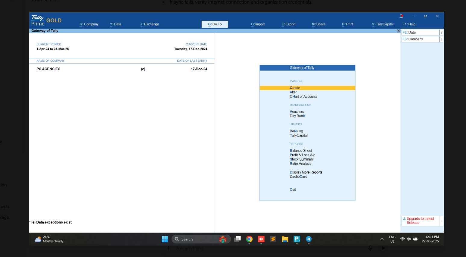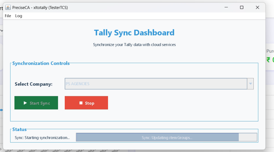 In the Sync Utility dashboard, your opened Tally company will appear in the Select Company dropdown.