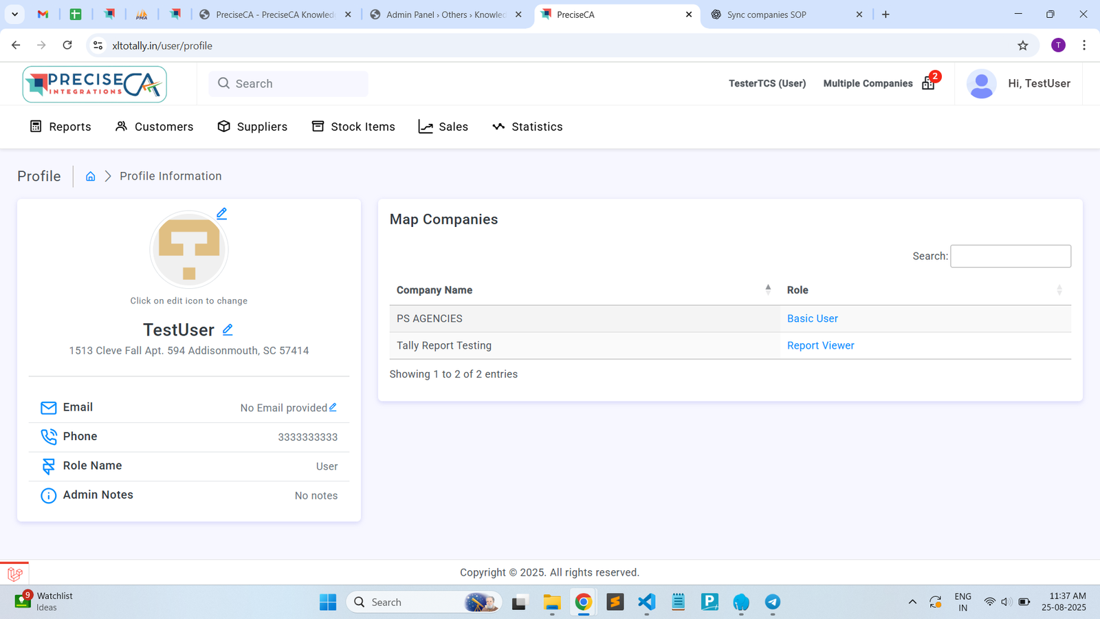 When a user logs into PreciseCA, they can access their profile by: